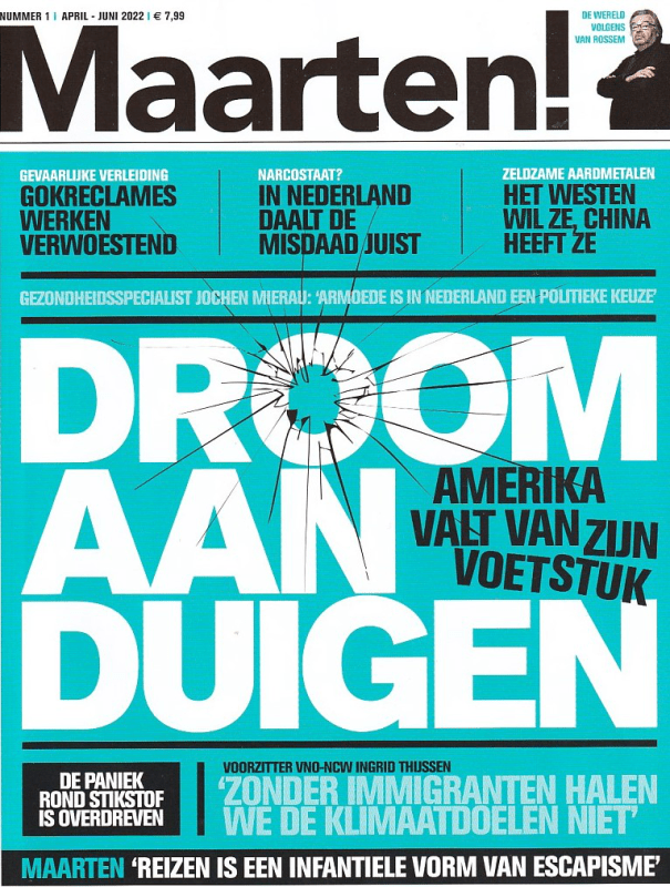 In de zomer van 2008 verscheen de eerste aflevering van het tijdschrift Maarten ! als parodie op de trend van glossy’s van bekende Nederlanders zoals de Linda, maar dan met een serieuze inhoud. Hierin schreef gasthoofdredacteur Maarten van Rossem, samen met andere historici, o.a. over de Amerikaanse presidentsverkiezingen, de opkomst van het populisme in Nederland en de jaren vijftig. De uitgave was eenmalig, maar wegens meer dan 47 000 verkochte exemplaren werd het tijdschrift voortgezet vanaf 2009. Het blad verschijnt nu vier keer per kalenderjaar en bevat informatieve en opiniërende artikelen en interviews over maatschappelijke en politieke onderwerpen. Ben je een liefhebber van historicus en nationale brombeer Maarten van Rossem (o.a. bekend als eenkoppige jury in De slimste mens) en ben je geïnteresseerd in politieke en maatschappelijke onderwerpen, dan is dit tijdschrift misschien iets voor jou. Koop eens een los nummer en misschien ben je daarna – net als ik – een echte Maarten !-fan .